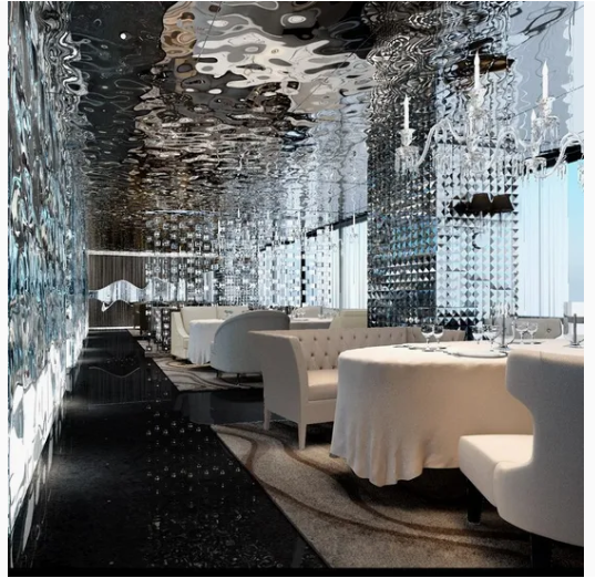 Rivestimenti murali: utilizzati nelle hall degli hotel, nei negozi di lusso e negli ascensori per un aspetto sofisticato e futuristico.